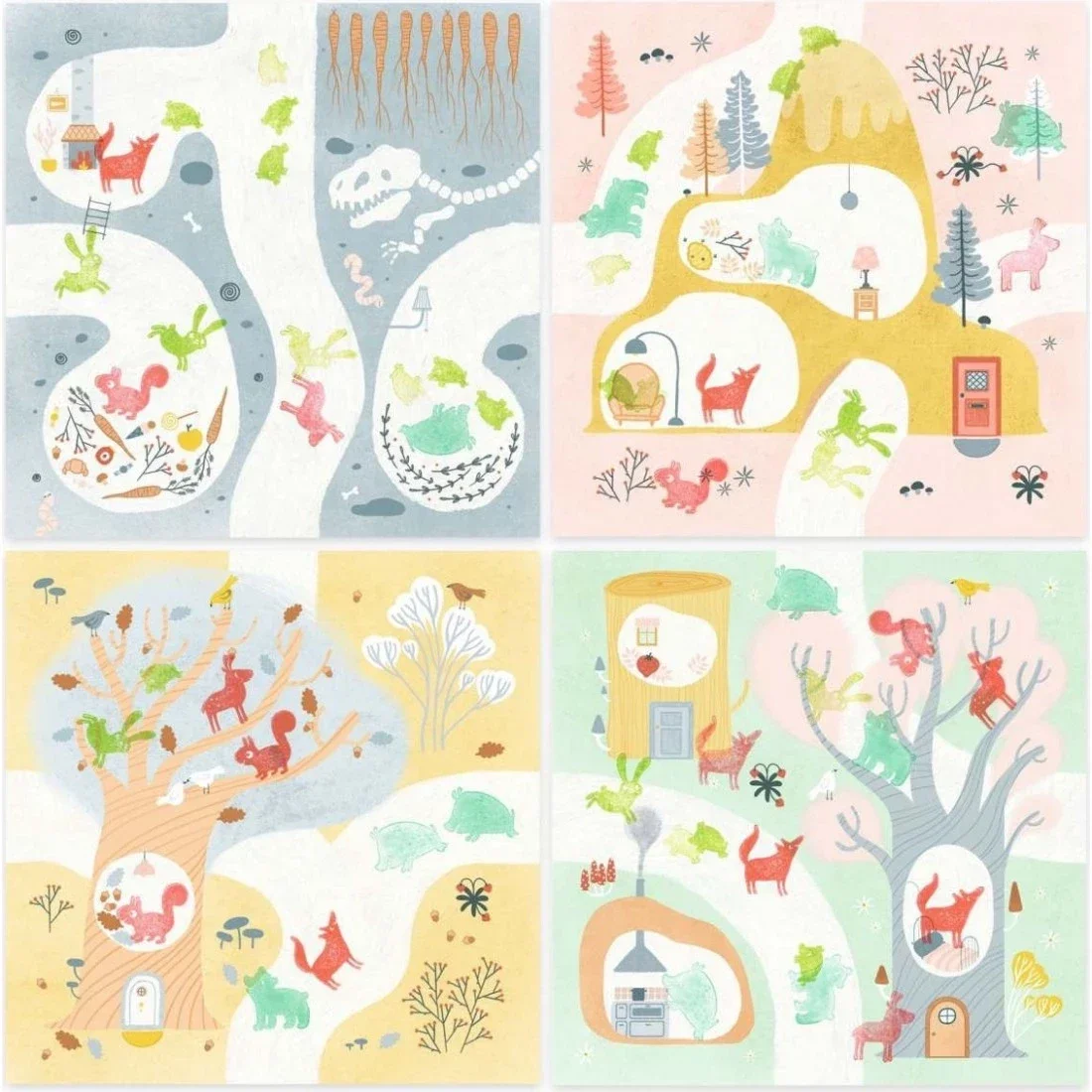 Un jeu de tampons sur le thème des animaux où l'enfant est libre de décorer les cartes avec les jolies illustrations. Progressivement, il colore les tampons avec l'encre du tampon et pose les tampons sur l'image pour donner vie aux gabarits de décor et laisser libre cours à son imagination. Les cartes peuvent être assemblées pour former un parcours fabuleux !