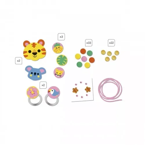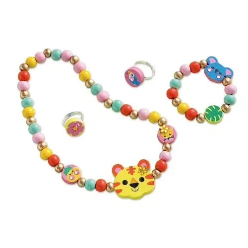 ◦ 4 bijoux en bois à assembler, thème animaux de la jungle