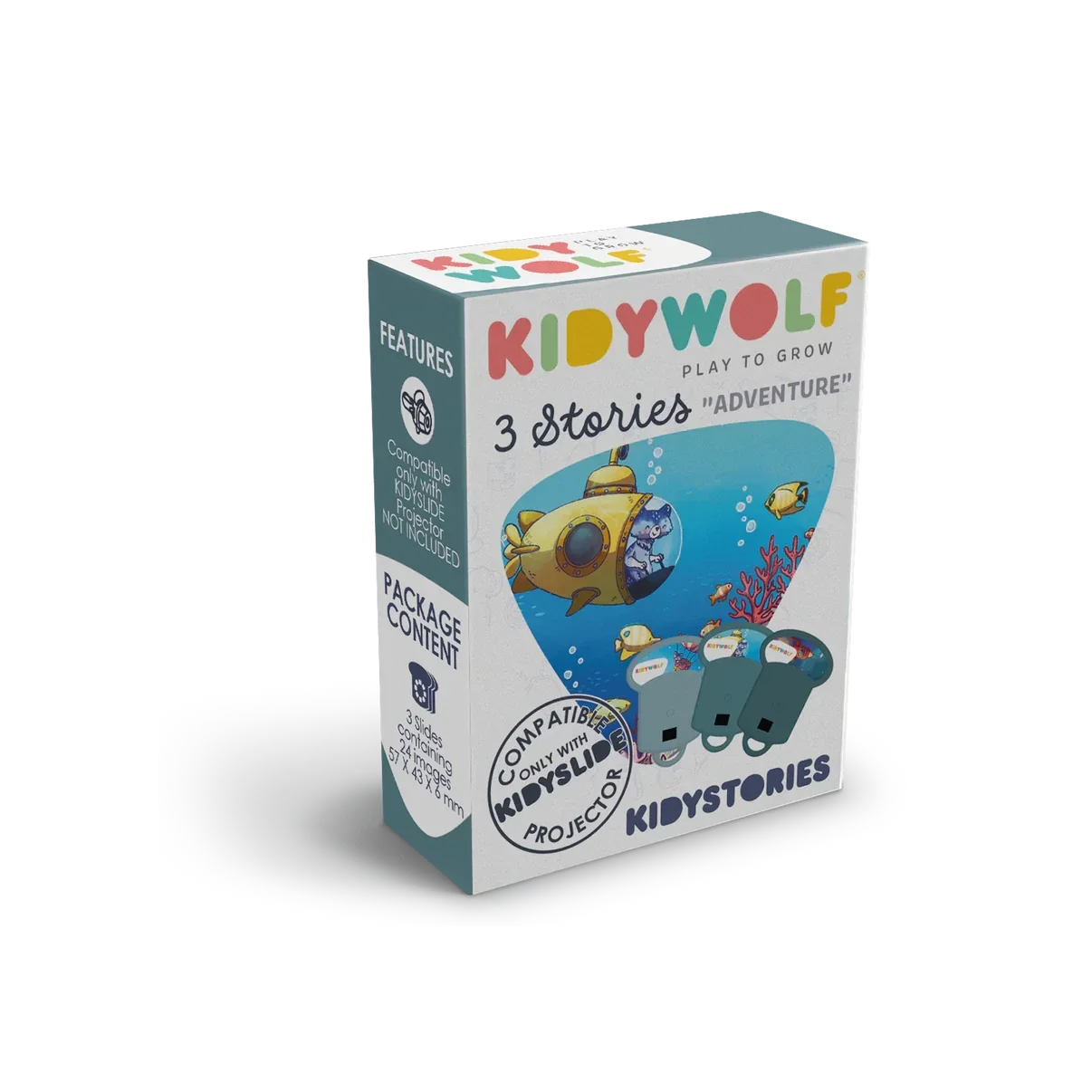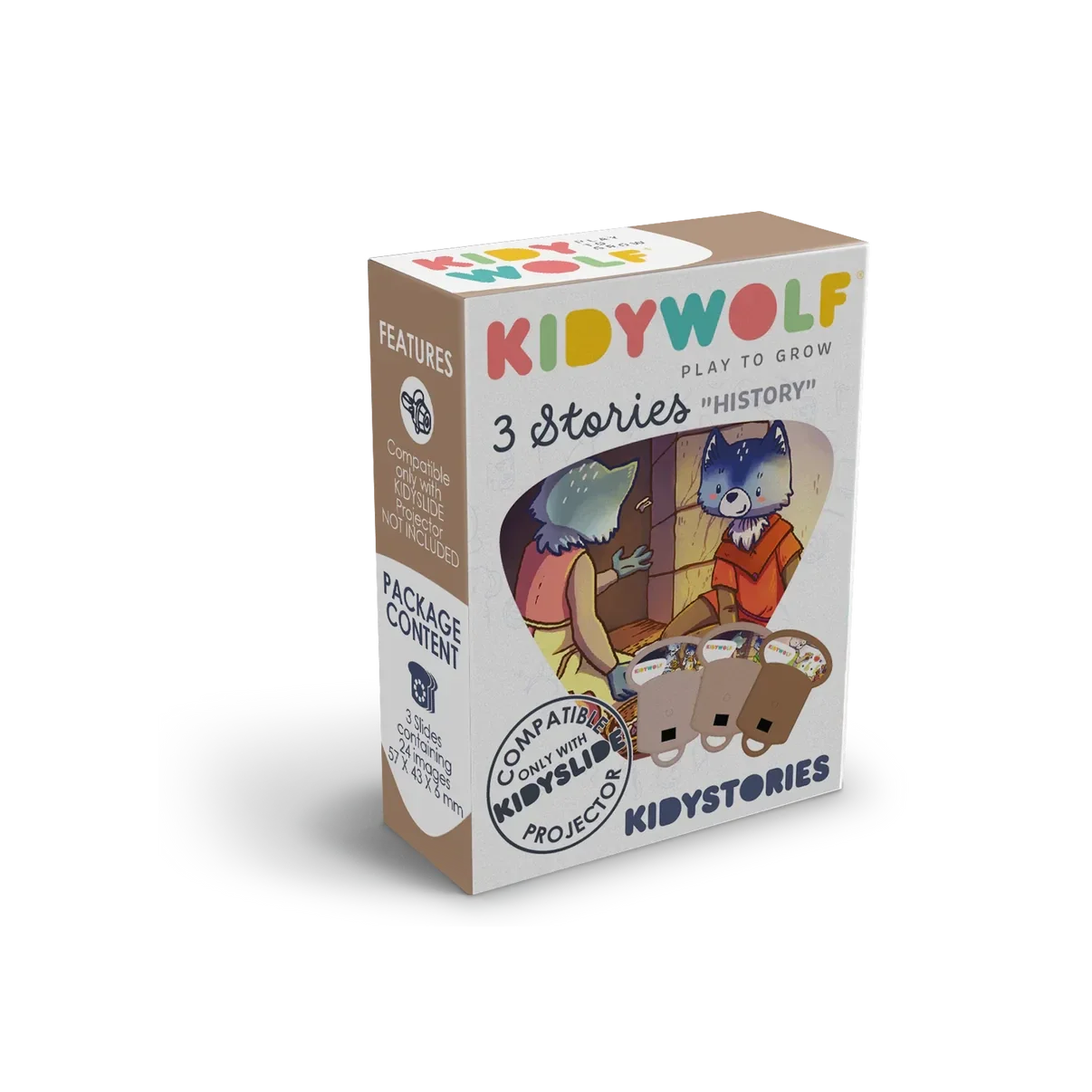 KIDYSTORIES est un ensemble d’histoires conçu pour être utilisé avec la torche à histoires KIDYSLIDE. Chaque set d’histoires transporte les enfants dans un monde d'imagination et d’aventure, où ils peuvent rêver, apprendre et développer leur créativité. Ces histoires, accompagnées d'illustrations réalisées en Belgique, sont parfaites pour enrichir la routine du coucher ou pour des moments de détente créative.