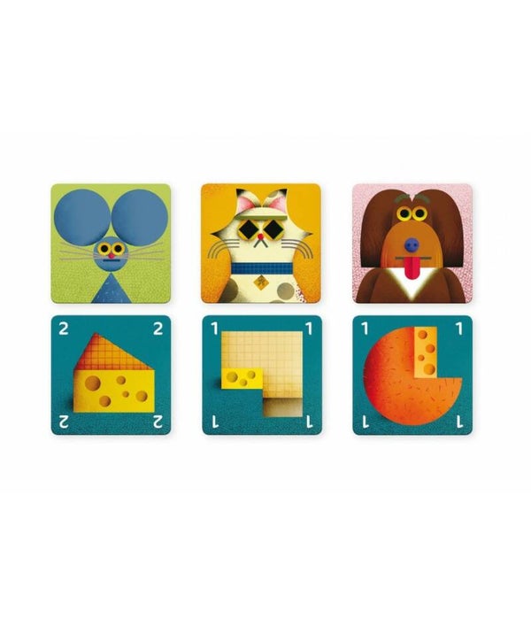 Ontdek Cheese rescue van Djeco, een tactisch spel waarbij muizen kaas verslinden, katten op muizen jagen en honden katten bang maken. Een kaartspel voor kinderen vanaf 7 jaar.