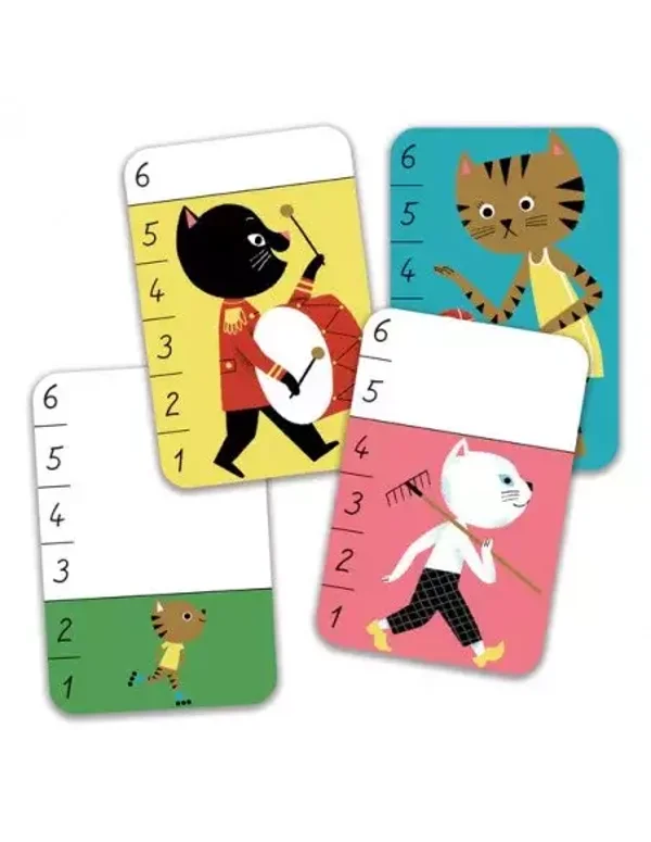 Les cartes sont graduées de 1 à 6, donc pour les plus petits, pas besoin de savoir compter, il suffit de comparer la taille des chats! Des illustrations avec des chats rigolos qui plairont aux petits.