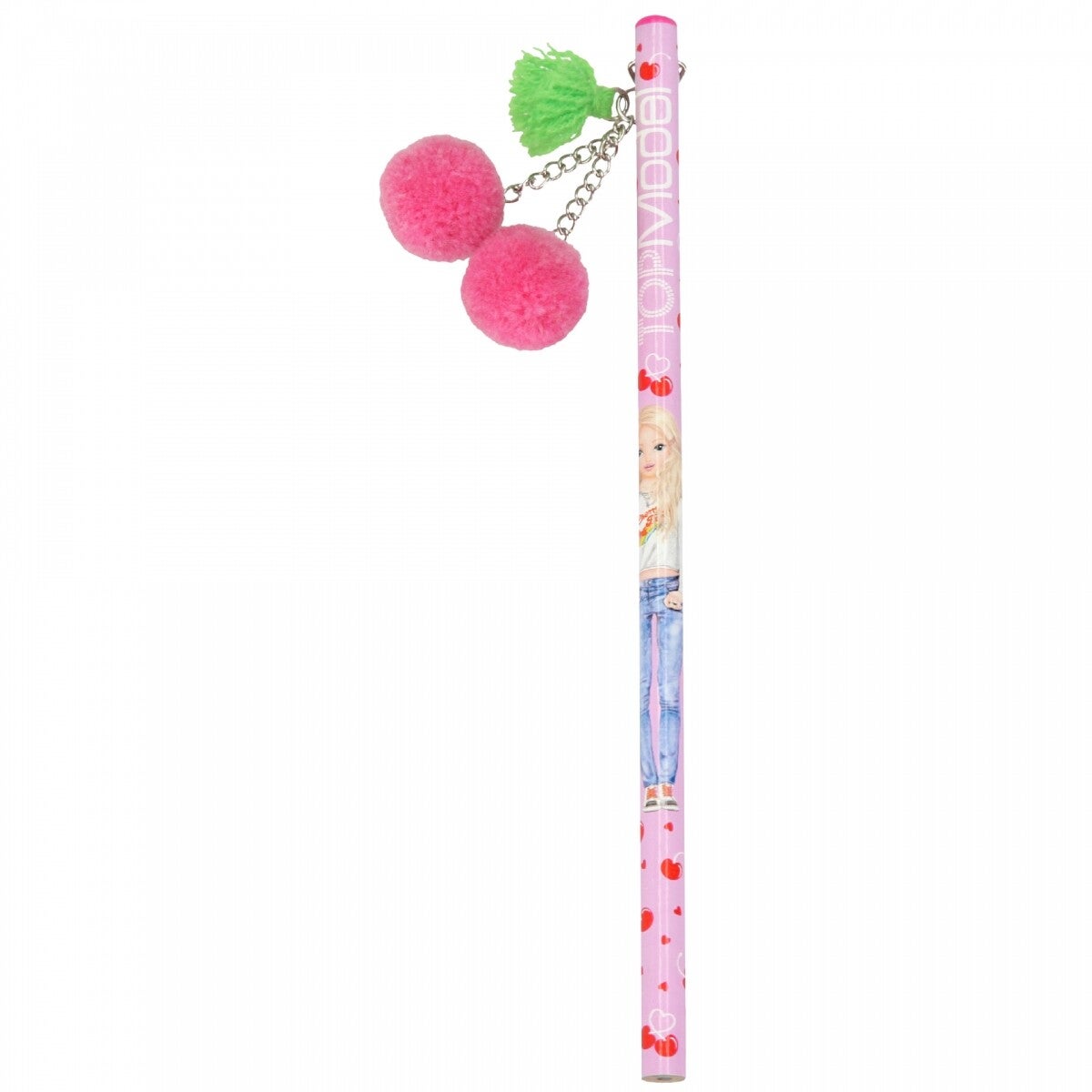 Sweeet!!! En dat heel letterlijk: van de serie Cherry Bomb met het zoete kersendesign word je wel vrolijk. De potloden (HB) zijn rondom met kleine kersenhartjes bedrukt en natuurlijk met een cool TOPModel. Het leukste zit aan het einde van het potlood: een grappige hanger met twee pompons als kersen en een klein kwastje! Maar: niet aan knabbelen!