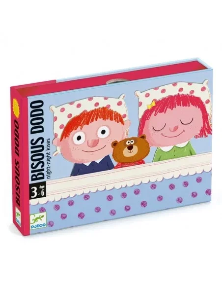 Découvrez Bisou dodo de Djeco, un jeu de cartes adapté aux plus petits dès 3 ans, qui deviendra vite un rituel au moment du coucher : un oreiller, un drap et un doudou à trouver, des bisous à recevoir et... bonne nuit!