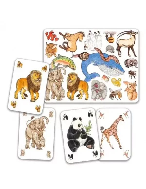 Een bordspel met prachtig geïllustreerde kaarten met dieren, perfect voor het ontwikkelen van observatievaardigheden en concentratie. Een compacte speldoos, een reisspel om overal mee naar toe te nemen.