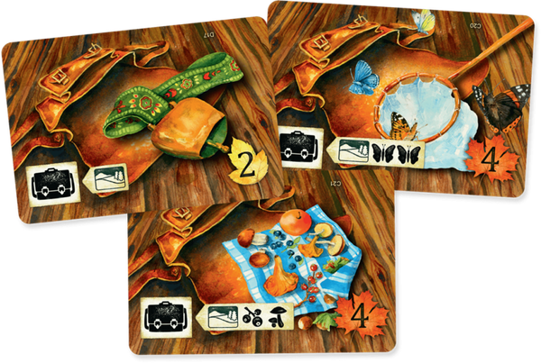 Wat zit er in de doos? 1 centraal bord, 2 dubbelzijdige kampvuurborden en 2 blokkeerfiches, 184 kaarten, 12 opdrachtfiches, 20 wandelfiches, 12 bonusfiches, 28 routetegels, 1 solotegel, 1 startspelerfiche, 5 enveloppen met extra kaarten, 1 ronderteller, 4 gekleurde schijven, 4 vouwbare kaartenhouders, 1 handleiding, 1 kaartenregister, 1 blad met instructies & de spelregels.