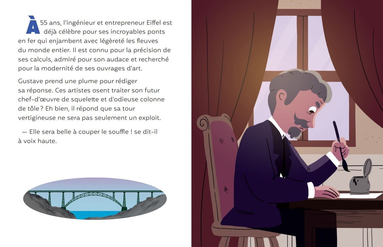 Une collection de livres brochés de 32 pages qui renferment un épisode de la vie d'un personnage célèbre, historique ou légendaire, raconté comme une histoire : ici Gustave Eiffel et le projet de son incroyable tour ! En fin d'ouvrage, un dossier historique illustré pour aller plus loin.