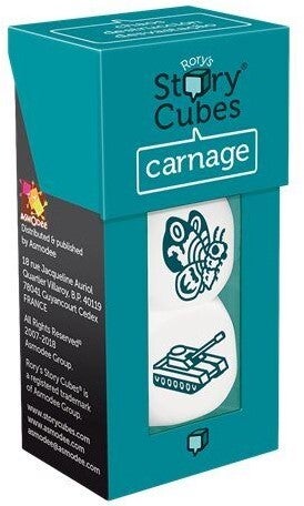 Carnage is een uitbreidingsset voor Rory's Story Cubes en bevat 3 nieuwe dobbelstenen.